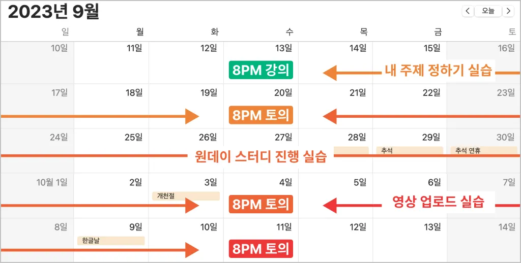 템플릿으로 공유 받고, 실제 본인의 원데이 스터디를 운영해 봅니다.